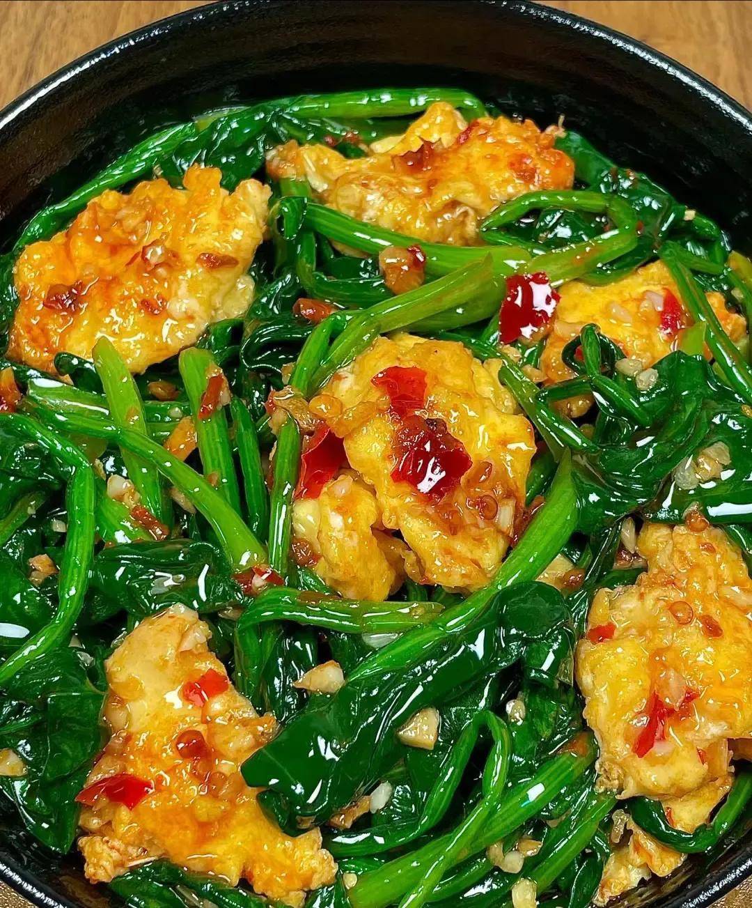 1. 菠菜炒鸡蛋——懒人必备“能量炸弹”