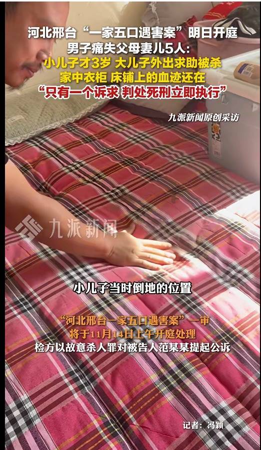 “河北邢台一家五口遇害案”一审11月14日上午开庭,检方以故意杀人罪对被告人范某某提起公诉。